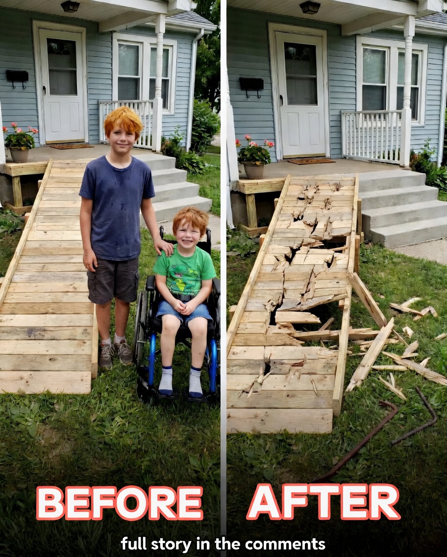 You walked back inside, heart heavy, wondering how anyone could be so cruel to a child who had already lost so much. The emotional bonds between Ethan and Caleb had grown so strong in those few days of freedom that seeing the ramp destroyed felt like losing something precious all over again.