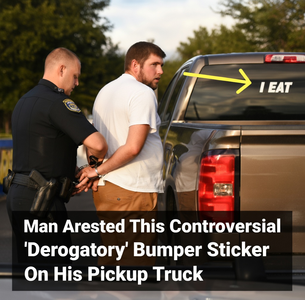 The complication deepens when the details of the decal and the charges emerge, showing that the man was arrested for what authorities called “inciting unrest” while critics immediately called it a blatant violation of First Amendment rights, the kind of public clash that forces families everywhere to confront how quickly ordinary citizens can lose their freedom and their savings when the system decides to make an example out of someone who dared to speak their mind.
