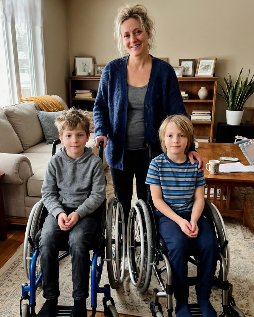 Three years earlier, the twins, Lucas and Noah, were in a car accident while their father, Mark, drove them home from school. The boys survived but suffered permanent disabilities requiring full-time care. The mother became their primary caregiver—lifting growing ten-year-olds, managing daily medications, attending every therapy session, and handling all household duties. She had thrown her back out multiple times from the physical demands but kept going because her children needed her. Mark, meanwhile, worked at his father’s logistics company and claimed long hours were necessary to secure the CEO position that would finally allow them to hire nurses and ease the burden.