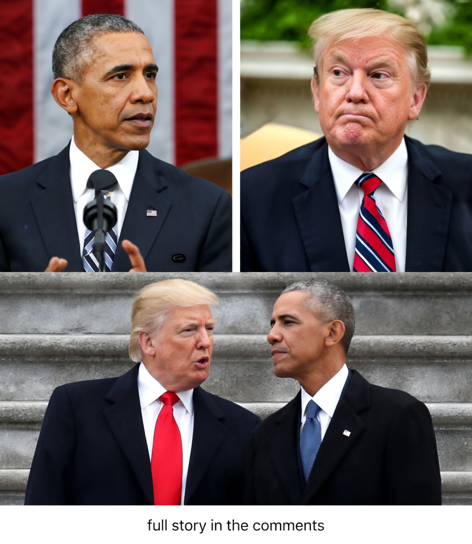 The moment captured in the bottom panel felt different from the usual campaign trail photos. Trump in his signature red tie, Obama in a classic blue one, standing on neutral ground without microphones or cheering crowds. It reminded everyone that beneath the titles and the battles, they were simply two men who had both held the highest office in the land.