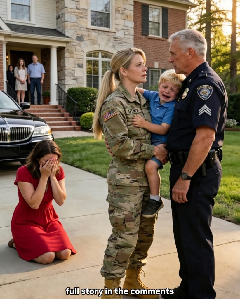Minutes later three police cars pulled up. Lisa’s father, the chief, stepped out with two officers. He walked straight to you, his face pale. When he saw the burning medal and your son still on the ground, his shoulders dropped. He turned to Lisa and said the words no one expected: “This ends now.”