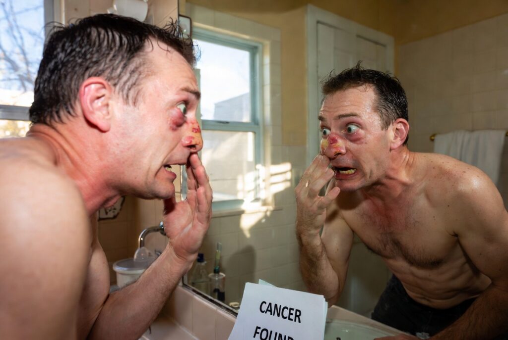 I’m 48, Bret from Phoenix, Arizona, and like millions of guys my age I brushed off the red patch on the side of my nose as “just rosacea.” It had been there for months — slightly itchy, nothing dramatic. My wife even joked it was from too much sun on the golf course. I slathered on cream and moved on. Then one routine dermatology check changed everything. The biopsy came back and the doctor looked me dead in the eye: “This isn’t rosacea. It’s skin cancer — aggressive basal cell carcinoma that’s already starting to spread.” My stomach dropped. What I thought was a minor skin issue became a life-threatening diagnosis — and a financial catastrophe that has now cost me $33,700 out of pocket with insurance denying most of the treatment.