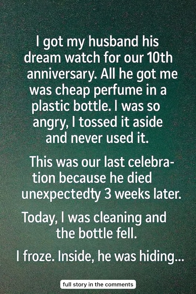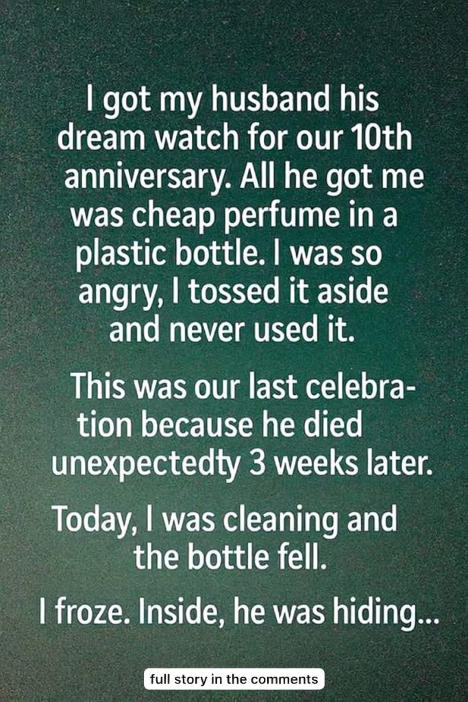 You stood in the candlelit restaurant on your tenth anniversary, the luxury watch you had saved for months sitting in your purse, when your husband slid a small glass bottle across the table with a shy smile. It looked cheap and ordinary, the kind of thing you’d find at a flea market, and your heart sank a little as you wondered why he hadn’t put more thought into it.